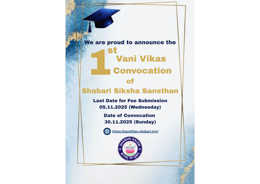 शबरी के वाणी विकास परीक्षाऍं हिन्दी बोलचाल की शैली को छात्रों तक ले जाने के साथ उनमें हिन्दी के प्रति रुचि बढाने का महत्वपूर्ण कार्य करता है |  प्रांत भर के अनेक शहरों से वाणी विकास परीक्षा के लिए छात्र तैयार किये जाते हैंे |  उचित पाठ्यक्रम के साथ हिन्दी में बोलने का प्रशिक्षण इस परीक्षा से दिया जाता है |  इससे हिन्दी शिक्षकों के साथ छात्र भी लाभान्वित हैं |  तमिलनाडु के कोने कोने में हिन्दी को पहुँचाने तथा हिन्दी को हृदयों में स्थान देने के उद्देश्य से वाणी विकास परीक्षाएँ चलायी जाती हैं |